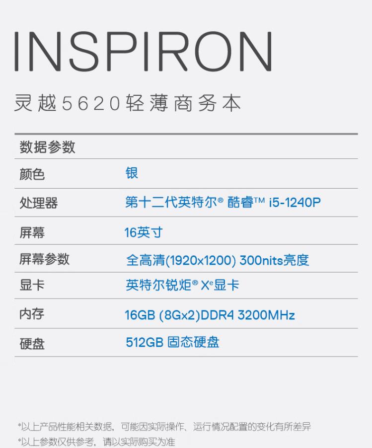 當(dāng)前位置: 首頁 > 計算機(jī)設(shè)備 > 便攜式計算機(jī) > 戴爾DELL 筆記本電腦 靈越16Pro INS5620-1605S 16英寸 低分屏 12代 i5-1240P 16G 512G 銳炬顯卡 銀