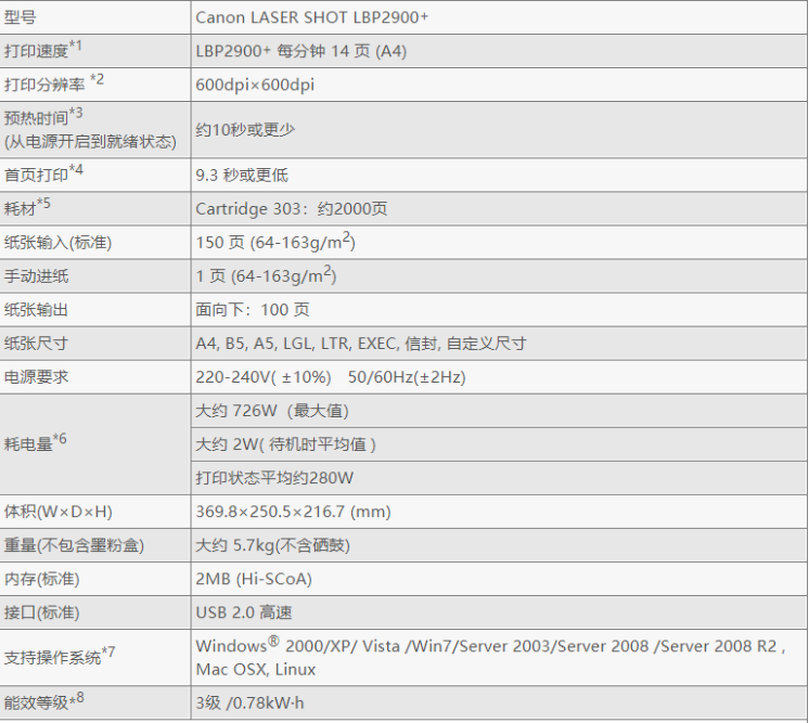 參數(shù) [品牌] 佳能 [型號] LBP2900+